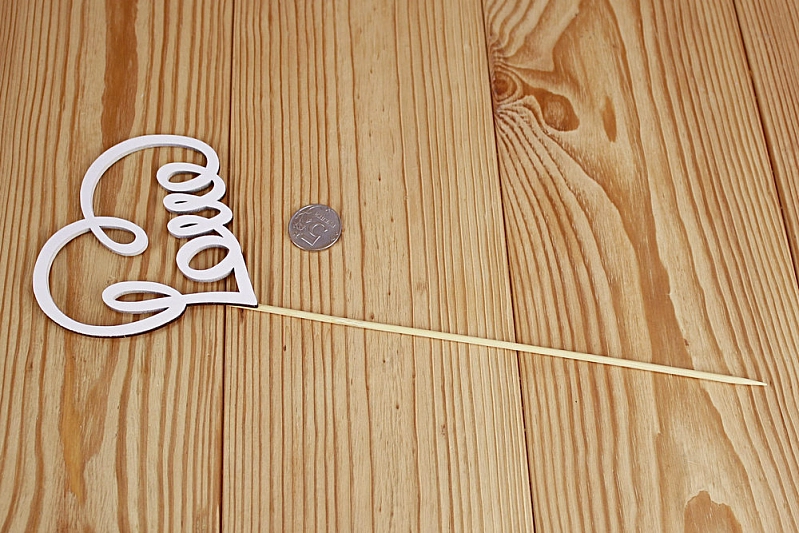 Топпер "Love" сердечком (10,5*30) МДФ 3мм, окрашен. на шпажке, Белый, 1 шт.