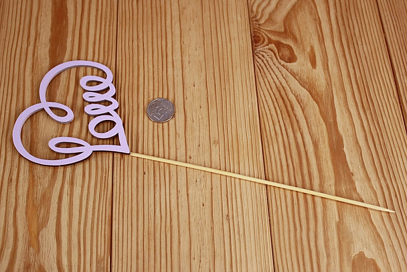 Тп333-04-4040 Топпер "Love" сердечком (10,5*30) МДФ 3мм, окрашен. на шпажке, Сиреневый пастель, 1 шт.