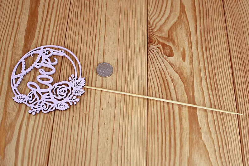 Топпер "Love" в круге (11,2*30) МДФ 3мм, окрашен. на шпажке, Сиреневый пастель, 1 шт.