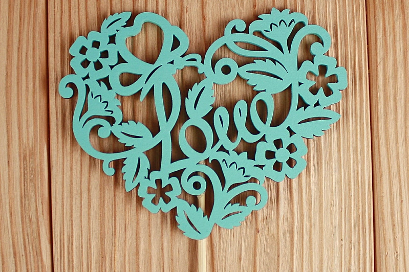 Тп334-04-2626 Топпер "Love" в сердце из цветов (11,2*30) МДФ 3мм, окрашен. на шпажке, Тиффани, 1 шт.