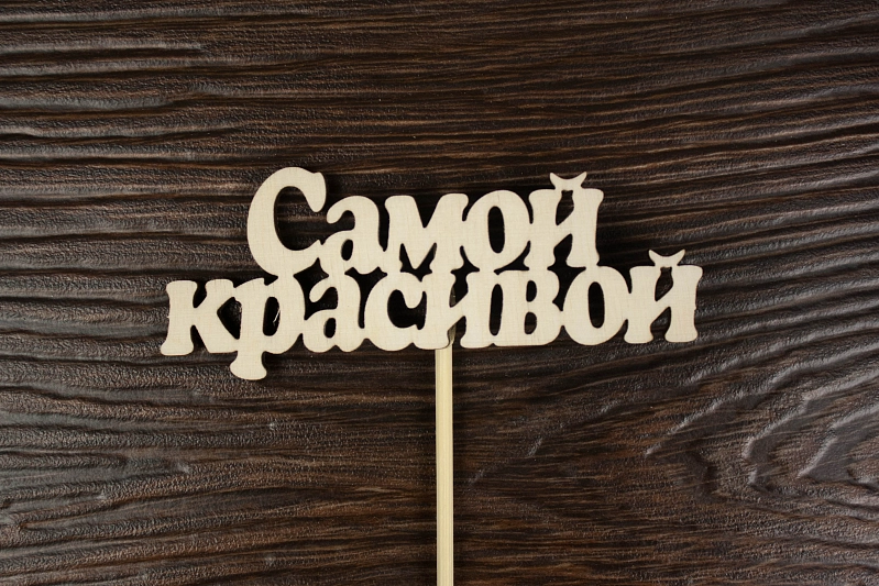 Твнб03-02-0000Н Топпер "Самой красивой" (26*10*0,3) Фанера 3мм, неокраш. на палочке