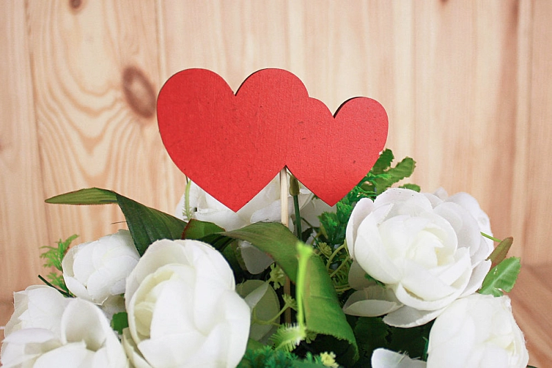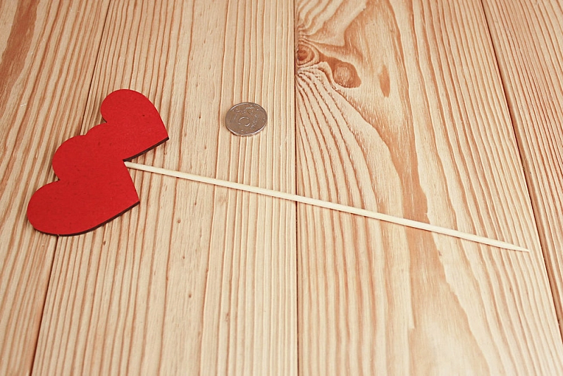 Топпер "Сердечки цельные" (10*28) МДФ 3мм, окрашен. на шпажке, Красный, 1 шт.