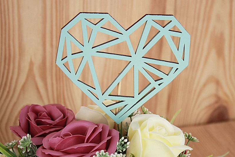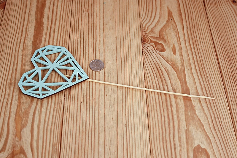 Топпер "Сердце геометрическое" (11*30) МДФ 3мм, окрашен. на шпажке, Тиффани, 1 шт.