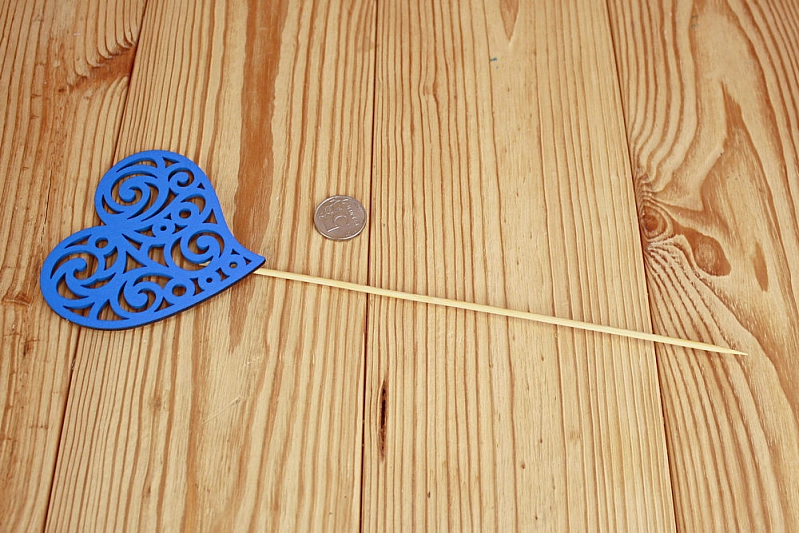 Топпер "Сердце с вензелями" (10*30) МДФ 3мм, окрашен. на шпажке, Синий, 1 шт