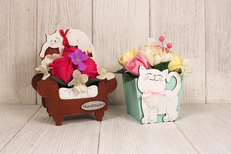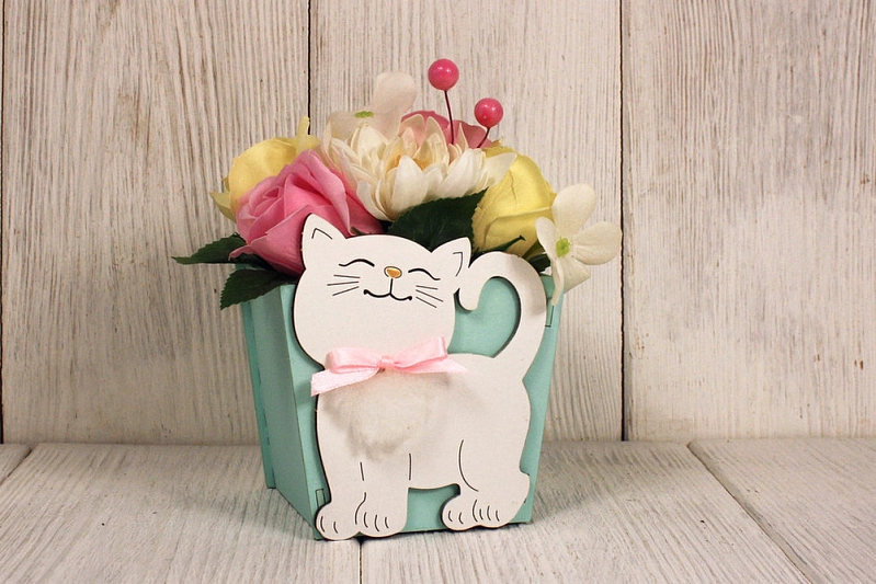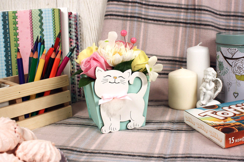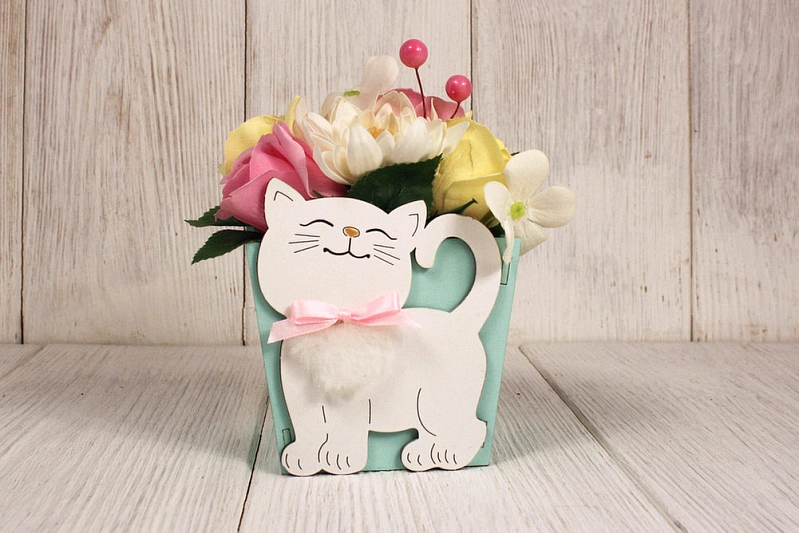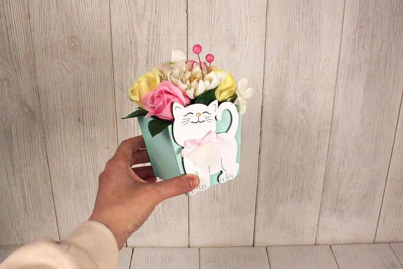 БМ09-00-4103 Цветочный букет "Счастливый котик" (14*11*16)