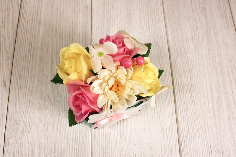 Подарите радость и улыбку своим близким с этим очаровательным букетом! Изготовленный из качественного МДФ и нежных мыльных цветов, он станет прекрасным украшением интерьера и символом вашей заботы. 💖