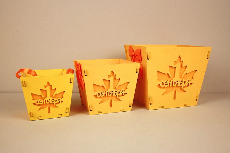 Набор подарочной упаковки "1 сентября" (16*15,5*14; 12*12*10,5; 10*10,5*9) МДФ 3мм, окрашен., оформл., Желтый, Набор 3 шт.