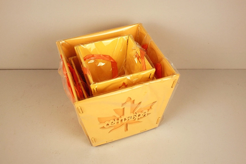 ПУ536-02-1616 Набор подарочной упаковки "1 сентября" (16*15,5*14; 12*12*10,5; 10*10,5*9) МДФ 3мм, окрашен., оформл., Желтый, Набор 3 шт.