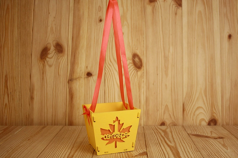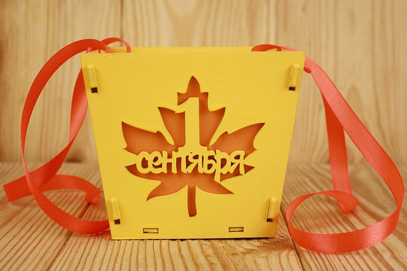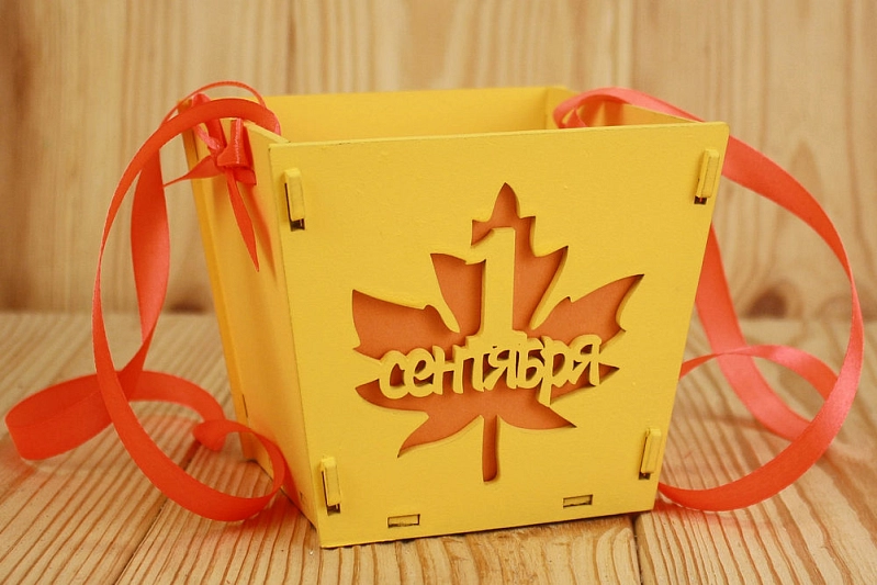 ПУ532-02-1616 Подарочная упаковка "1 сентября" средняя (12*12*10,5) МДФ 3мм, окрашен., оформл., Желтый, 1 шт.