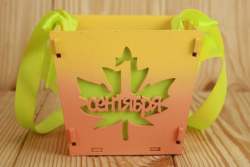 ПУ532-02-1615Гр Подарочная упаковка "1 сентября" средняя (12*12*10,5) МДФ 3мм, окрашен. с градиентом, оформл., Желтый-оранжевый, 1 шт.