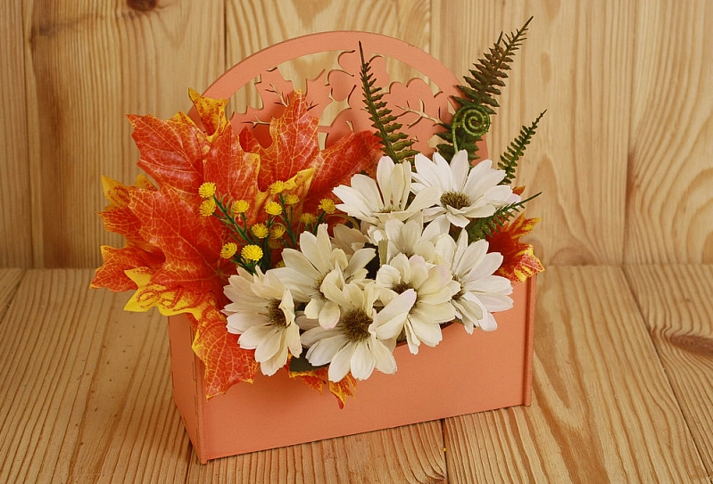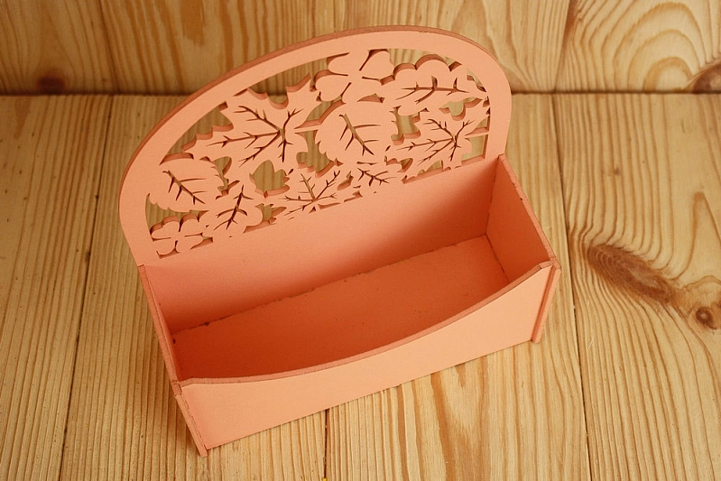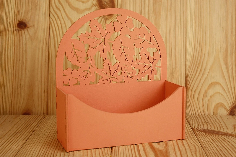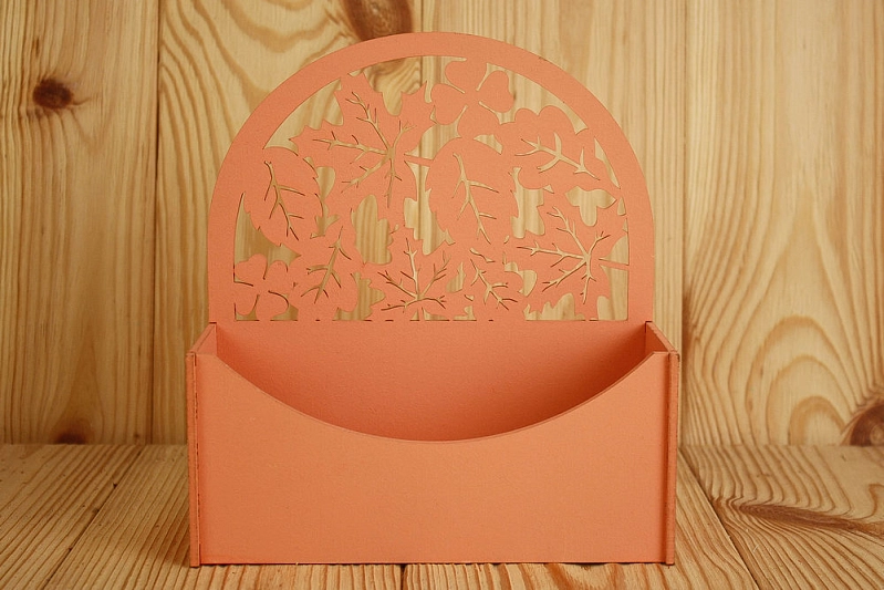 ПУ527-02-1515 Подарочная упаковка-конверт округлый с листьями (18*7,5*19,6) МДФ 3мм, окрашен., Оранжевый, 1 шт.