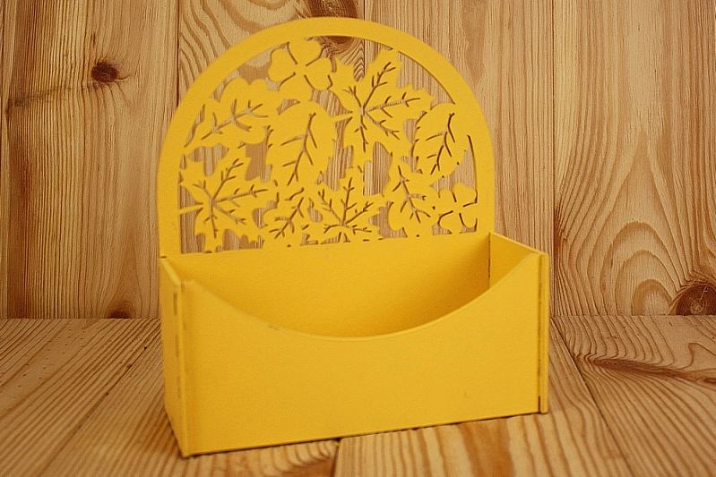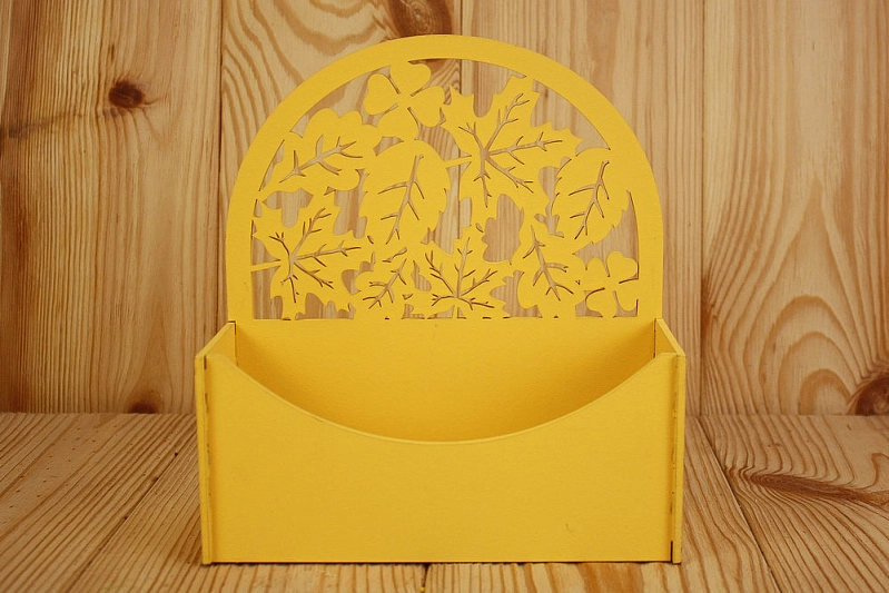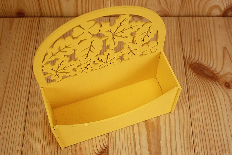 ПУ527-02-1616 Подарочная упаковка-конверт округлый с листьями (18*7,5*19,6) МДФ 3мм, окрашен., Желтый, 1 шт.