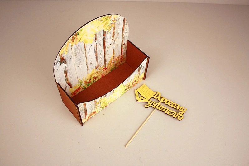 ПУ745-02-3716 Подарочная упаковка-конверт "Осенний" с топпером (18*7,2*18; топпер 12*5 на шпажке) МДФ 3мм, УФ печать, окраш. морилкой, оформл., Дуб-желтый, 1 шт.