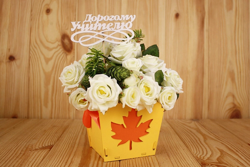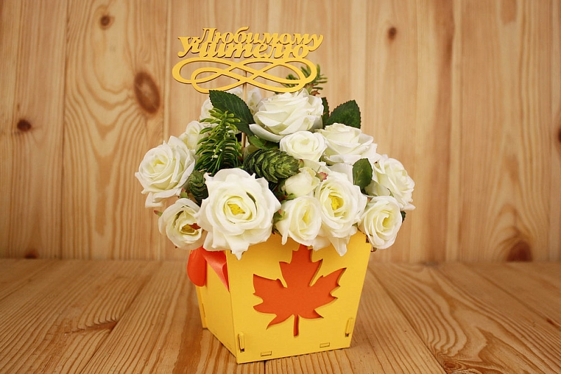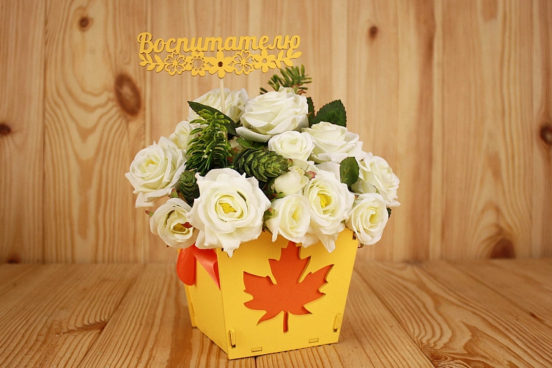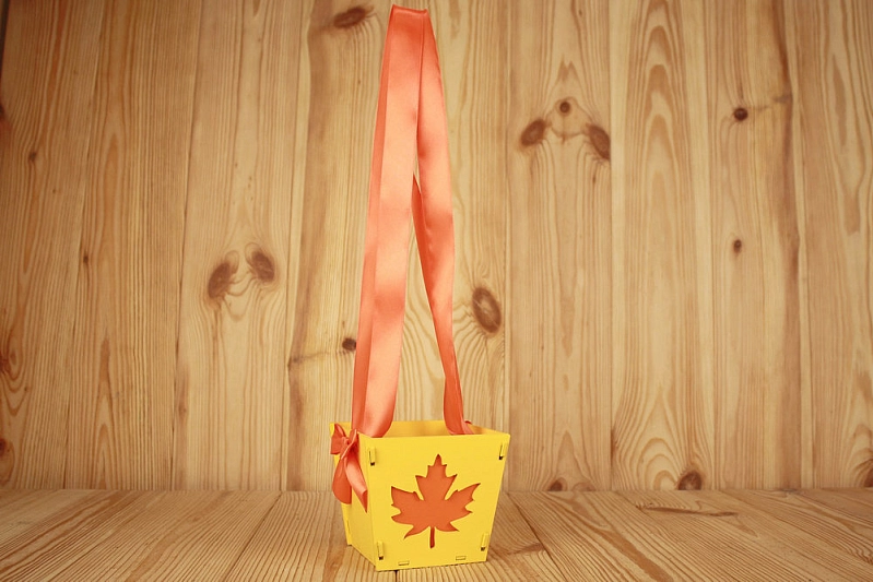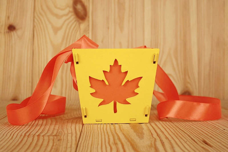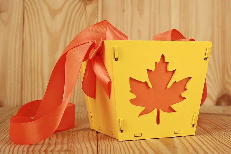 ПУ582-02-1615 Подарочная упаковка "Осенняя" средняя (12*12*10,5) МДФ 3мм, окрашен., оформл., Желтый, 1 шт.