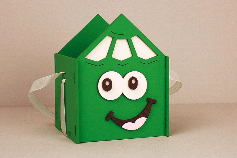 ПУ740-02-1203 Подарочная упаковка "Весёлый карандаш" (9,5*9,5*12,5) МДФ, окрашен., оформл., Зелёный-белый, 1 шт.