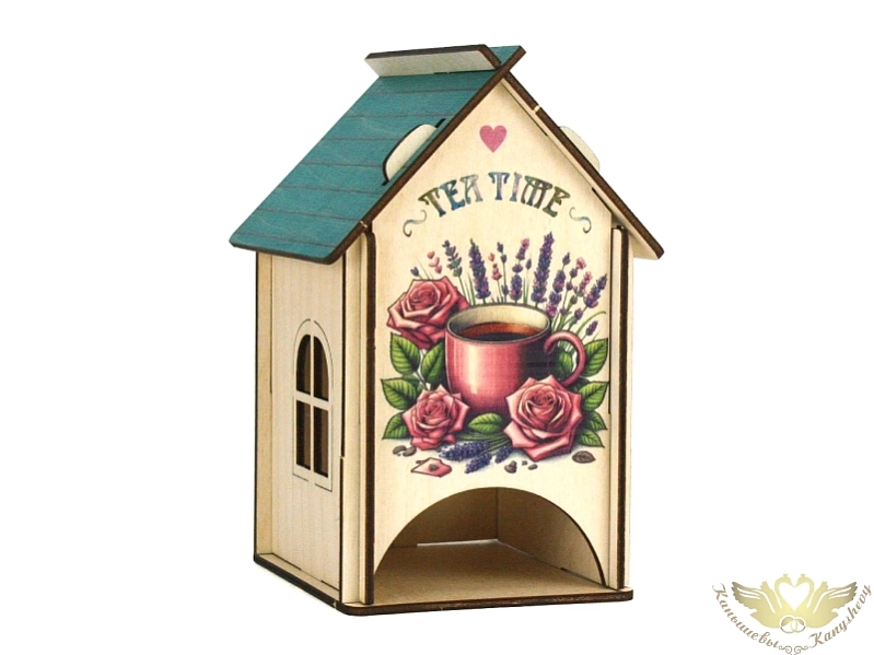 Чайный домик "TEA TIME" (11*10*16,5) Фанера, неокраш., УФ печать, 1шт.