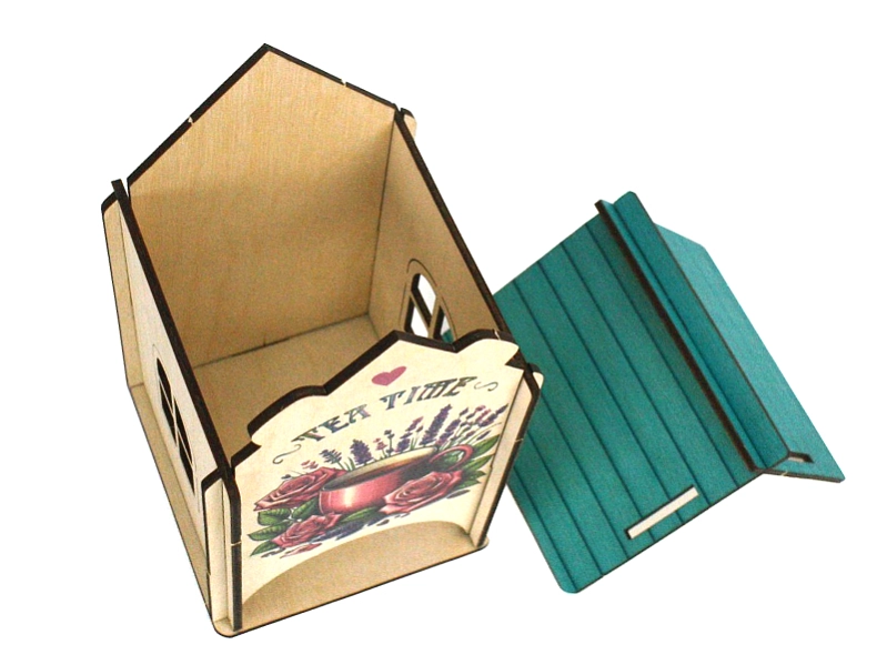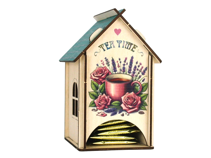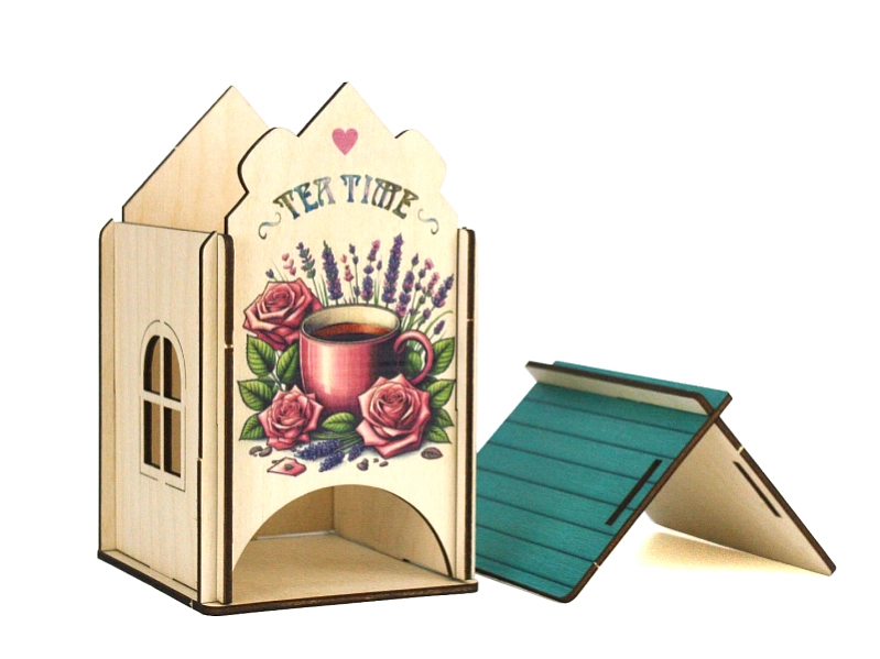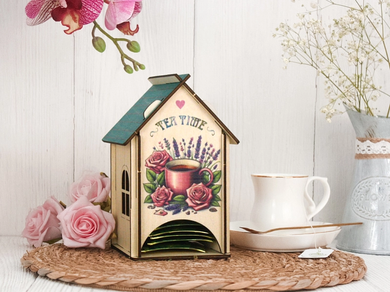 Домик украшен яркой и детализированной УФ-печатью с изображением ароматного чая и нежных роз. 🌹 Это создаст атмосферу уюта и тепла в вашем доме.
