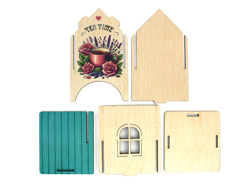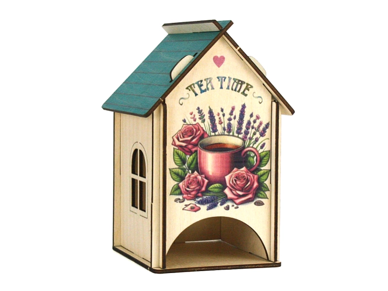 Чайный домик "TEA TIME" (11*10*16,5) Фанера, неокраш., УФ печать, 1шт. БЕЗ СБОРКИ