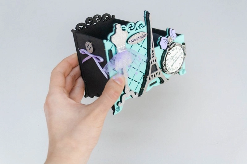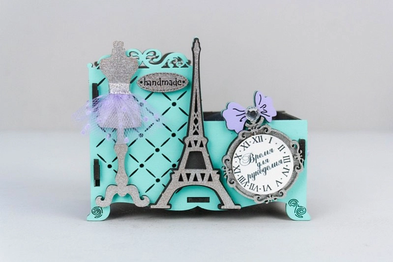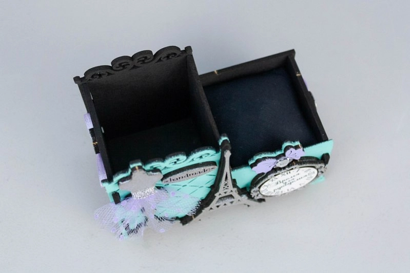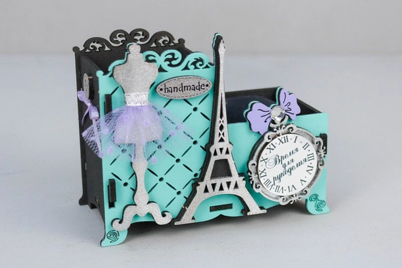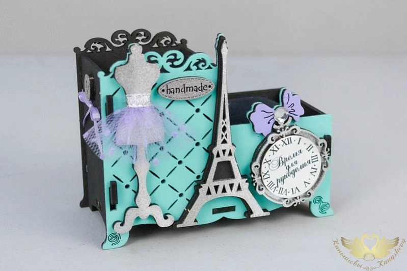 Игольница "Париж" (13*7*10,5) МДФ, окрашен. морилкой, оформл., Черный-тиффани, 1 шт.