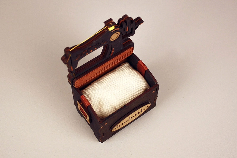 Сув660-02-3750 Игольница "Швейная машина" (9*5,5*12,5) МДФ, окрашен. морилкой, оформл., Дуб-черный, 1 шт.