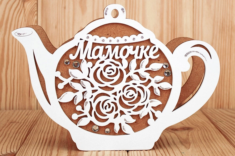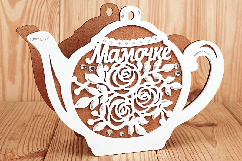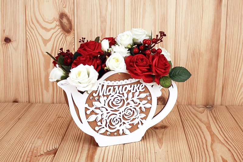 ПУ700-02-3703 Подарочная упаковка-чайник "Мамочке" (24,5*8,5*17) МДФ 3мм, окрашен. морилкой, оформл., Дуб-белый, 1 шт.