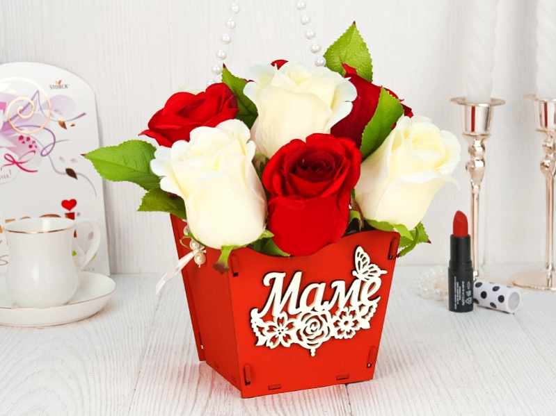 Изготовленная из качественного МДФ толщиной 3 мм, эта упаковка не только прочна, но и имеет привлекательный внешний вид. Красный цвет с белым оформлением создает яркий и запоминающийся образ. 🌷