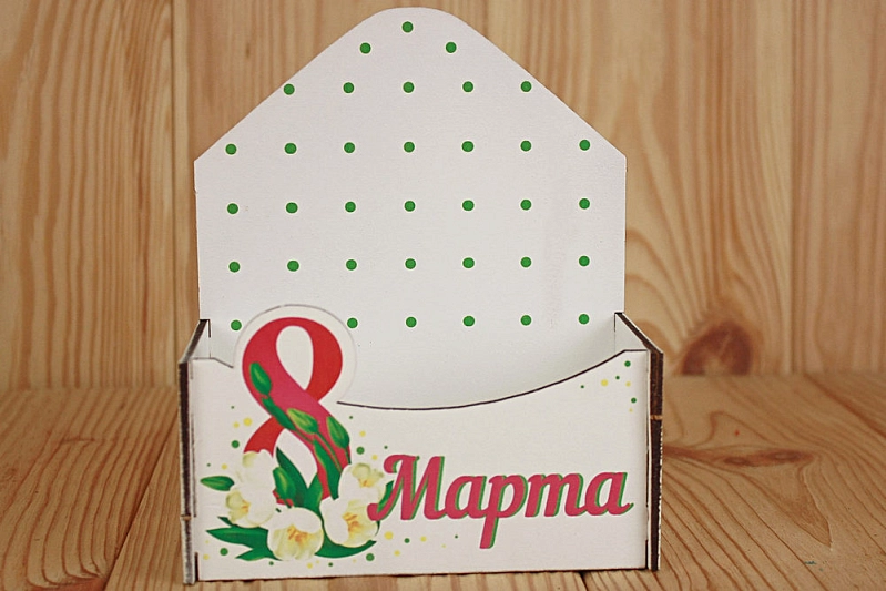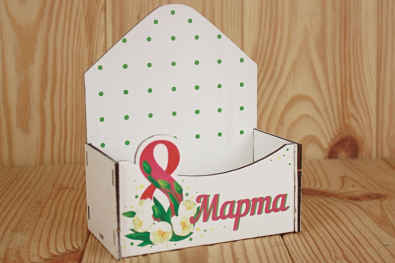 Ищете оригинальный способ поздравить любимых женщин с Международным женским днем? Эта милая подарочная упаковка-конверт станет отличным решением! 🎉 Изготовленная из прочного МДФ толщиной 3 мм, она надежно защитит ваш подарок и добавит ему особую привлекательность.
