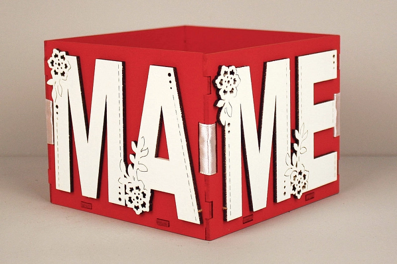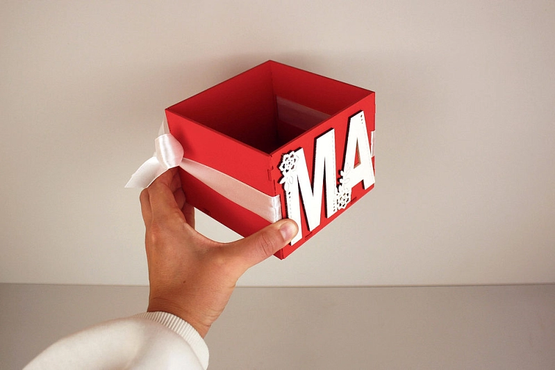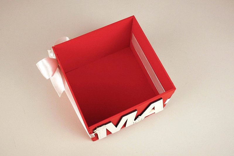ПУ765-02-0603 Подарочная упаковка "Маме" (12*12*9,5) МДФ 3мм, окрашен., оформл., Красный-белый, 1 шт.