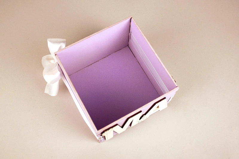 ПУ765-02-4003 Подарочная упаковка "Маме" (12*12*9,5) МДФ 3мм, окрашен., оформл., Сиреневый пастель-белый, 1 шт.