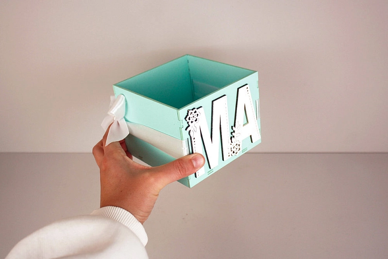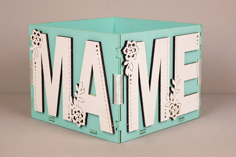 ПУ765-02-4103 Подарочная упаковка "Маме" (12*12*9,5) МДФ 3мм, окрашен., оформл., Тиффани пастель-белый, 1 шт.