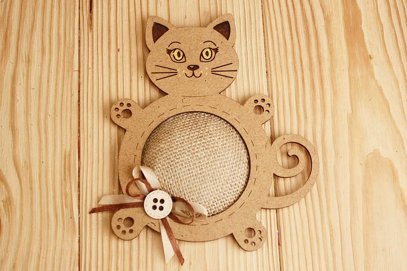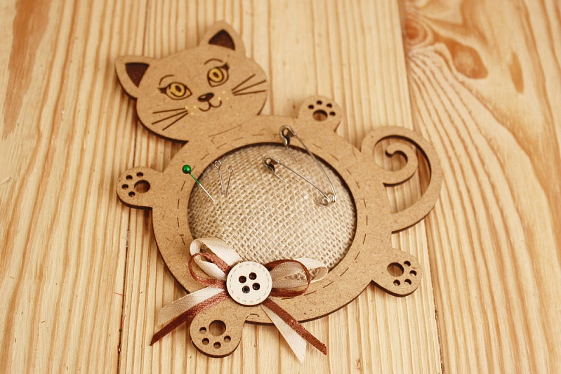 Сувенир-игольница "Киска" (14*16) МДФ 3мм, окрашен. морилкой, оформл., Орех, 1 шт.