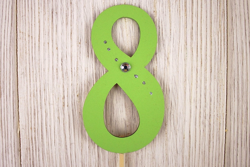Топпер "8" (5*34) МДФ 3мм, окрашен., оформл., на шпажке, Салатовый-серебро, Уп-10 шт.