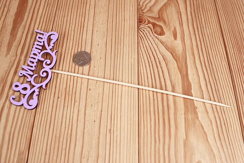 Топпер "С 8 Марта!" с вензелем (12*28) МДФ 3мм, окрашен. на шпажке, Сиреневый, 1 шт.