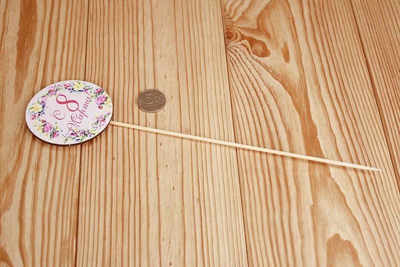 Топпер "С 8 Марта" в круге №2 (7,3*28) МДФ 3мм, УФ печать, на шпажке, 1 шт.