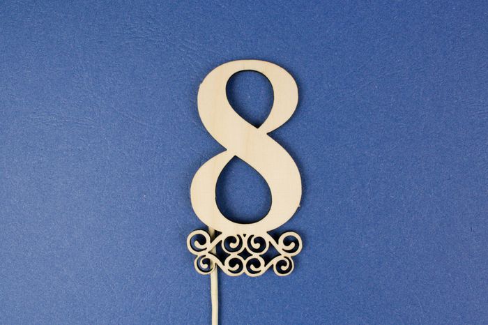 Тп33-02-0000 Топпер-цифра "8" с вензелем (шир.4,7см;выс.8,8см) фанера, неокраш., на палочке