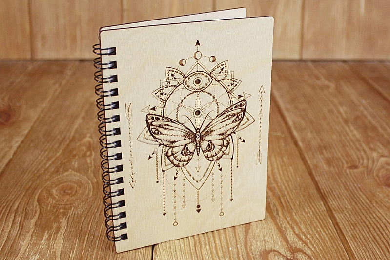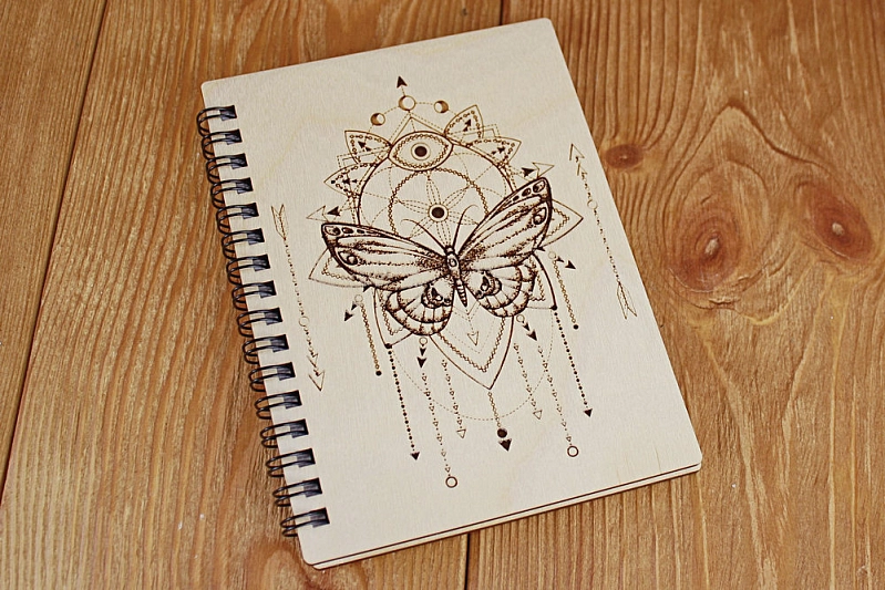 Блокнот на пружине "Бабочка" малый (15*11,5*1,2) Фанера 3мм, оформл., 1 шт.