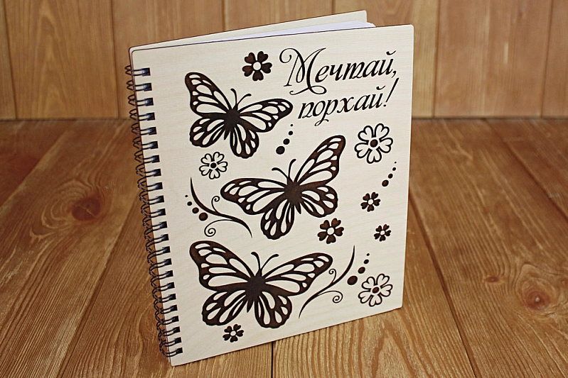 Блокнот на пружине "Мечтай, порхай!" (21*16,8*1,2) Фанера 3мм, оформл., 1 шт.