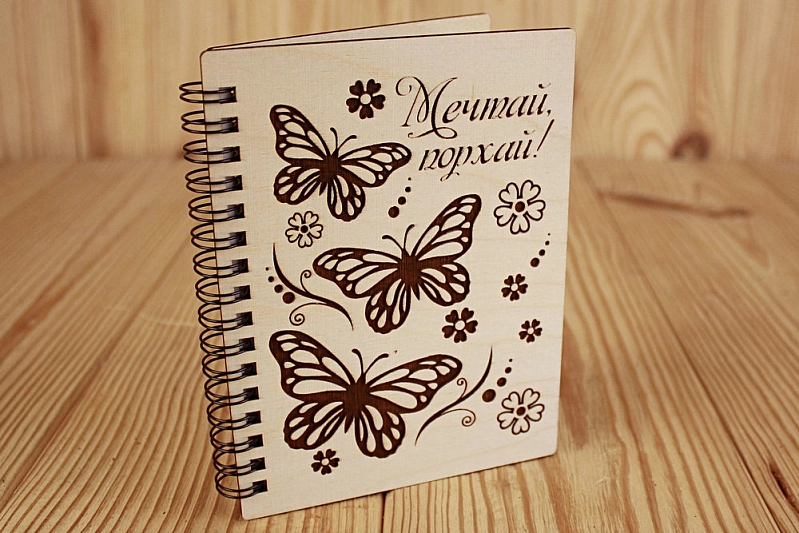 Блокнот на пружине "Мечтай, порхай!" малый (15*11,5*1,2) Фанера 3мм, оформл., 1 шт.