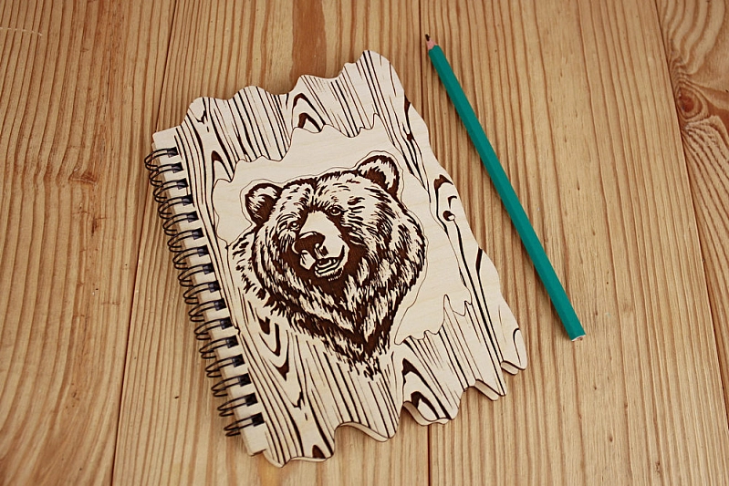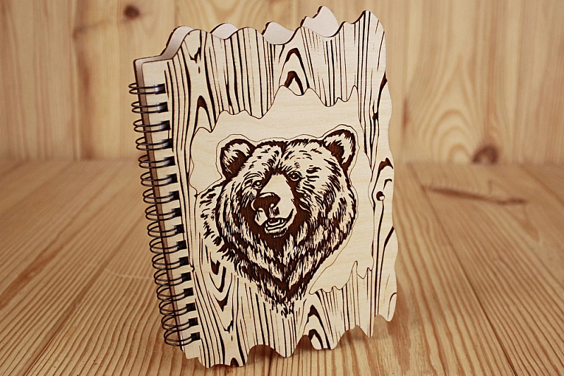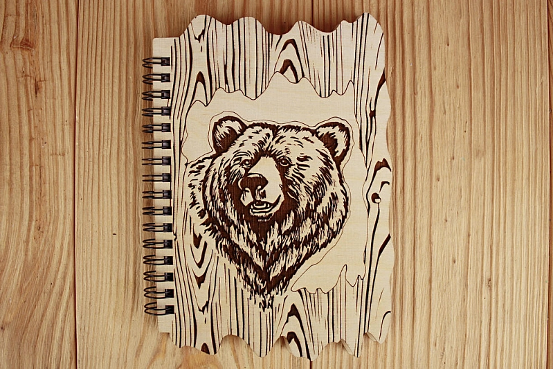 Блокнот на пружине "Медведь" малый (15*11,5*1,2) Фанера 3мм, оформл., 1 шт.