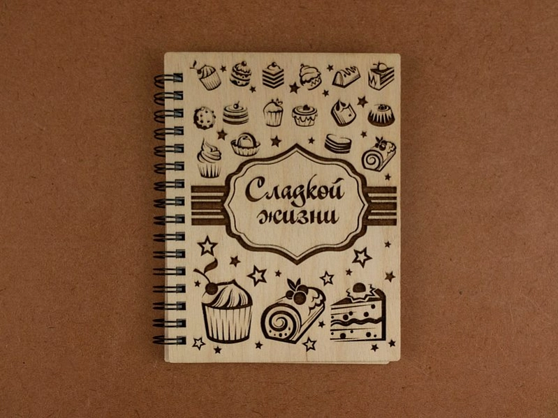 Блокнот на пружине "Сладкой жизни" малый (15*11,5*1,2) Фанера 3мм, оформл., 1 шт.