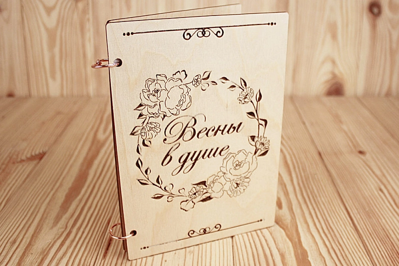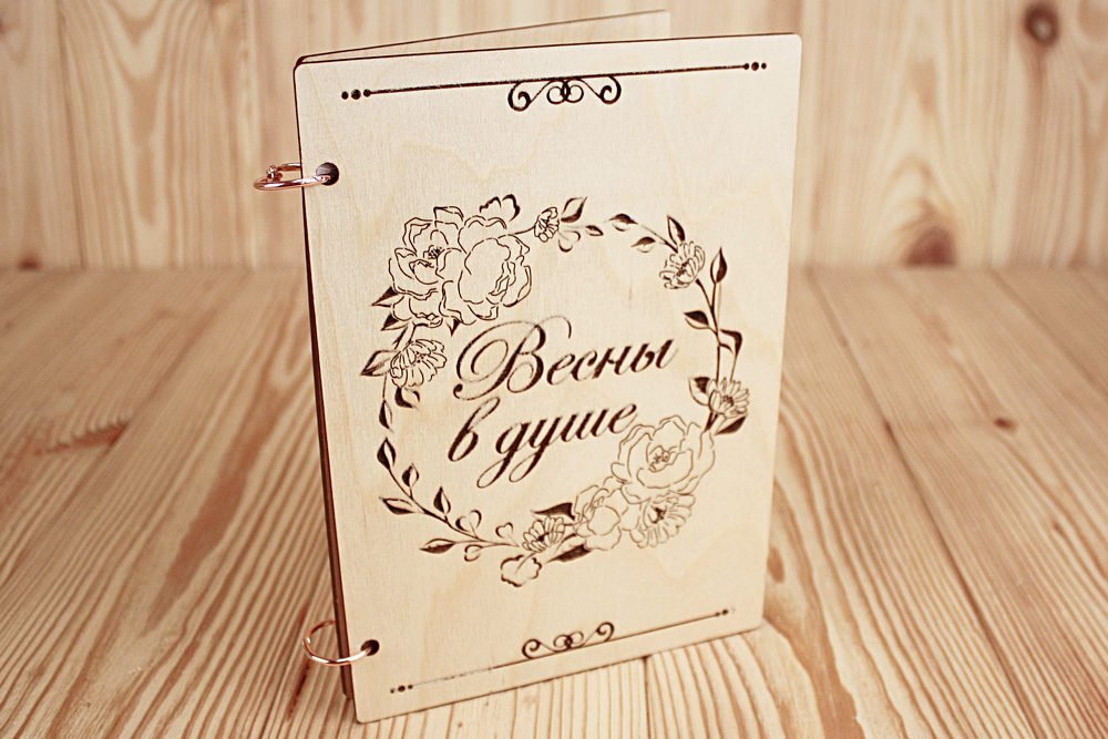 Бл01-00-0000 Блокнот "Весны в душе" (15,2*21,5*1,2) Фанера 3мм, оформл., 1 шт.