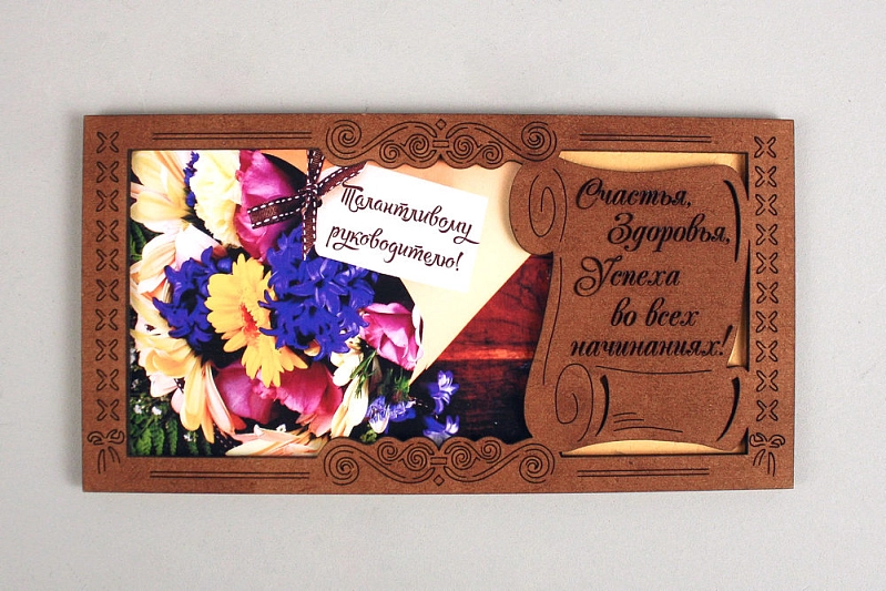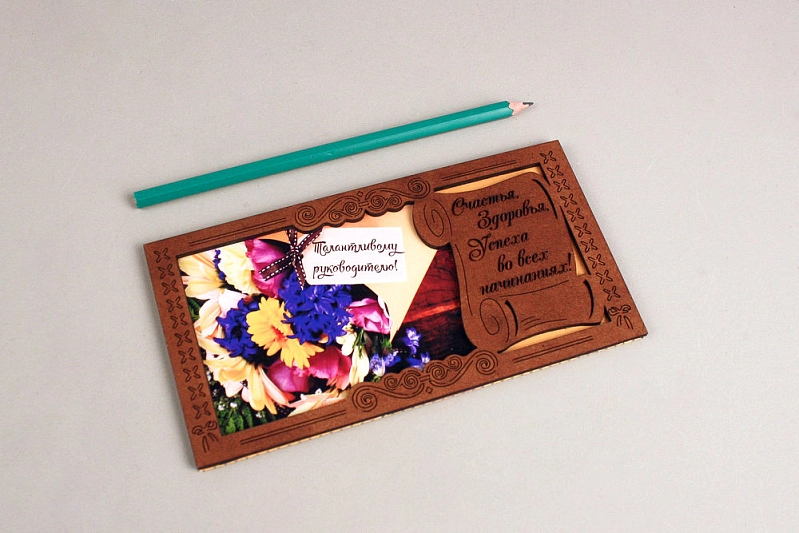 Подарочный конверт "Талантливому руководителю!" (9,2*17,5) МДФ, картон, окрашен. морилкой, оформл., Дуб-желтый, 1 шт.