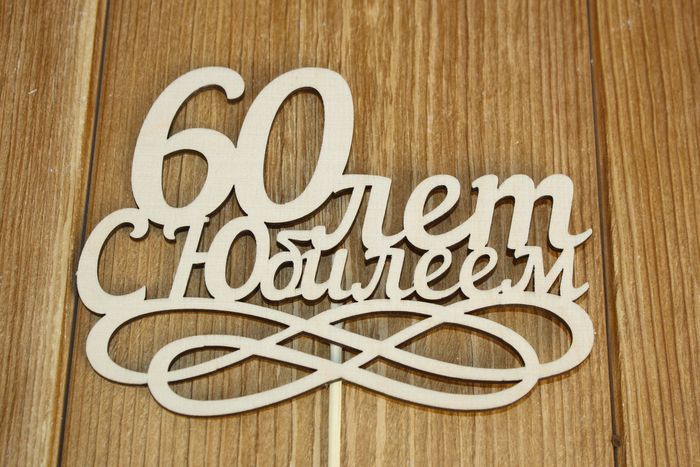 Тп196-02-0000Н Топпер "60 лет. С Юбилеем" (14*30) Фанера 3мм, неокраш., оформл. Уп-10 шт.