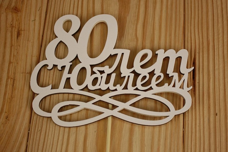 Топпер "80 лет. С Юбилеем" (14*30) МДФ 3мм, окрашен., оформл., Белый, 1 шт.