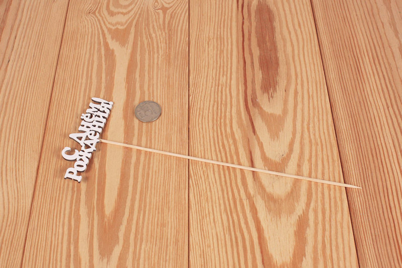 Топпер "С Днём Рождения!" №1 (10*25) МДФ 3мм, окрашен. на шпажке, Белый, 1 шт.