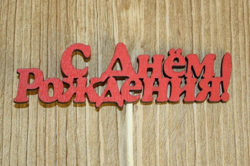 Топпер "С Днём Рождения!" №1 (10*25) МДФ 3мм, окрашен. на шпажке, Красный, Уп-10 шт.