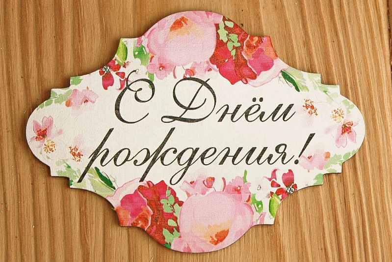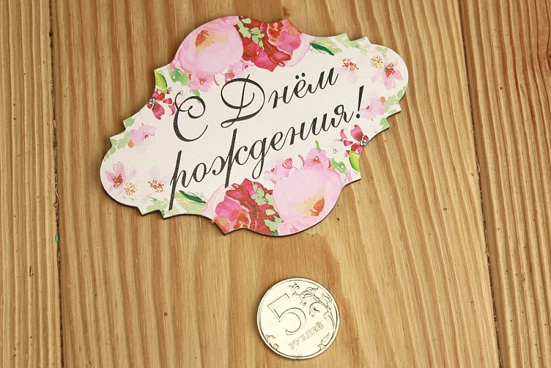 Тп259-01-0000Н Топпер "С Днём рождения!" классика №2 (10*7,5) МДФ 3мм, УФ печать, Уп-10 шт.