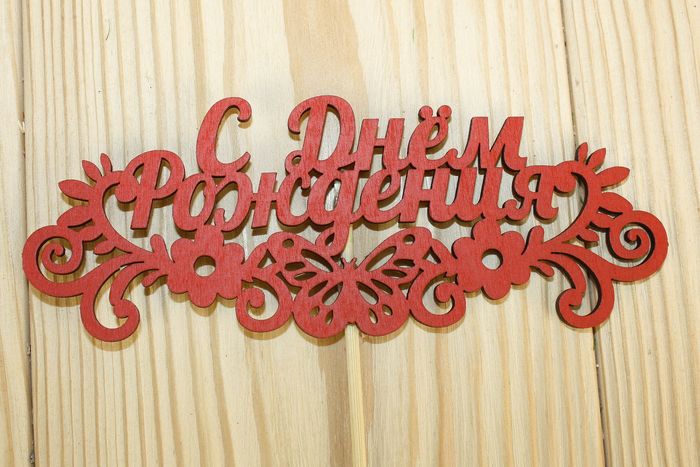 Топпер "С Днём рождения" с бабочкой (*14,5*28) МДФ 3мм, окрашен., оформл., Красный, 1 шт.