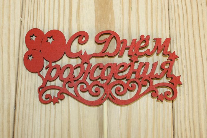 Топпер "С Днём рождения" с шарами (12*28) МДФ 3мм, окрашен., оформл., Красный, 1 шт.