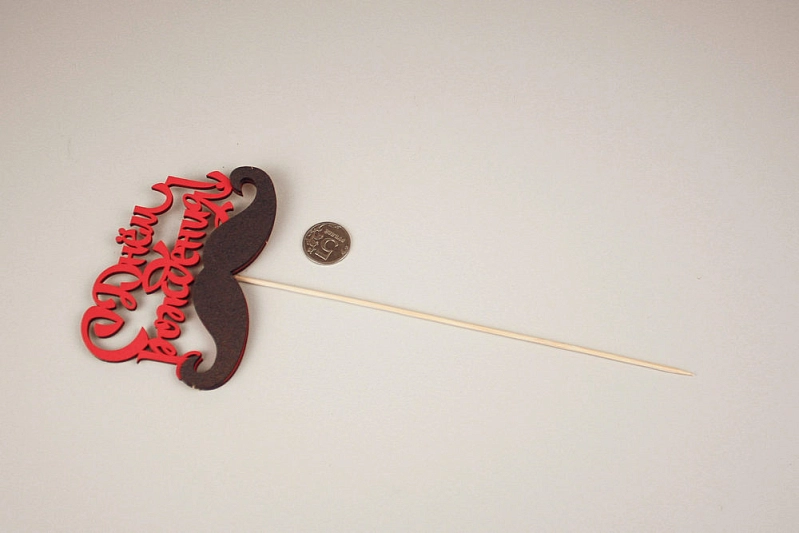 Топпер имеет оригинальный дизайн с усами, который добавит юмора и индивидуальности вашему празднику. 🥳 Он идеально подойдет для тематических вечеринок, дней рождения и других особых случаев. 🎈